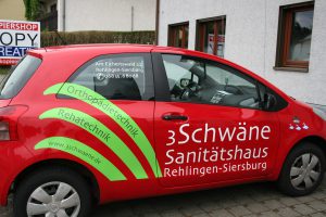 Autobeschriftung mit Hochleistungsvinyl und C-Folie in den Farben weiß, grün und anthrazit.